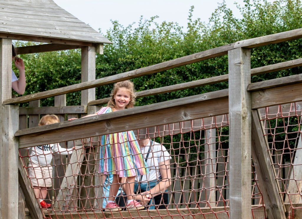 Take a break while the children let off steam on the playpark. They can test their skills balancing on the activity trail, climbing up onto the towers and platforms, going down the slide and fireman’s pole, or just hide away in the tunnels and dens.