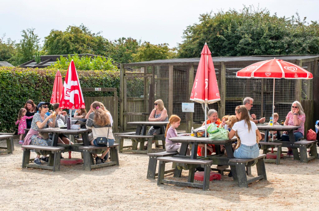 Enjoy the sunshine and scenery at one of the many seat and picnic tables around the zoo. There are main picnic areas near the wildlife pond and the playpark, alongside many more secluded benches and seats in the gardens and rest of the zoo. If its raining – or even too sunny! – there is a small marquee with a few under-cover tables.